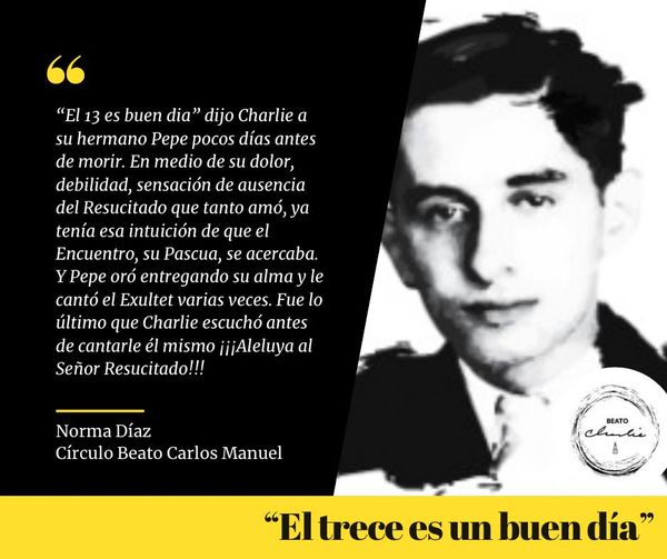 Ruega por nosotros Beato Carlos Manuel, en este día que celebramos tu pascua al cielo 🙏🏼❤️😇 #BeatoCharlie #eltreceesunbuendia #VivimosParaEsaNoche