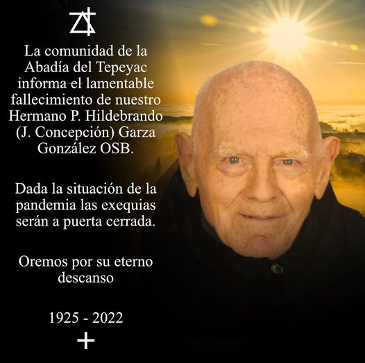 + La comunidad de la Abadía del Tepeyac informa el lamentable fallecimiento de nuestro Hermano P. Hildebrnado OSB, Oremos por su eterno descanso.