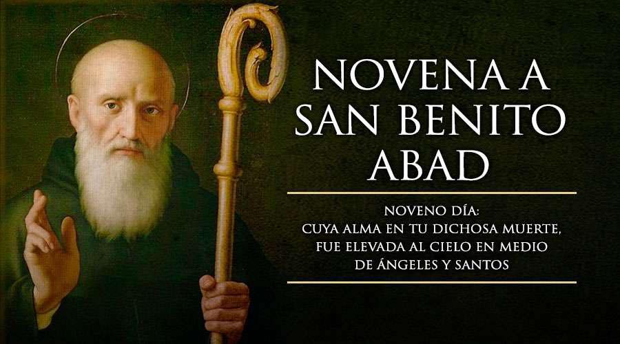 ¡Oh glorioso San Benito, cuya alma en tu dichosa muerte, fue elevada al cielo en medio de ángeles y santos, siendo consolados tus discípulos por la revelación de tu gloria!