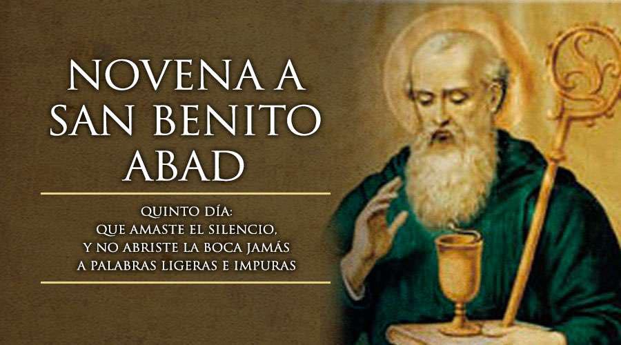 ¡Oh glorioso San Benito, que amaste el silencio, y no abriste la boca jamás a palabras ligeras e impuras, a quejas, murmuraciones, y a juicios contra el amor al prójimo!