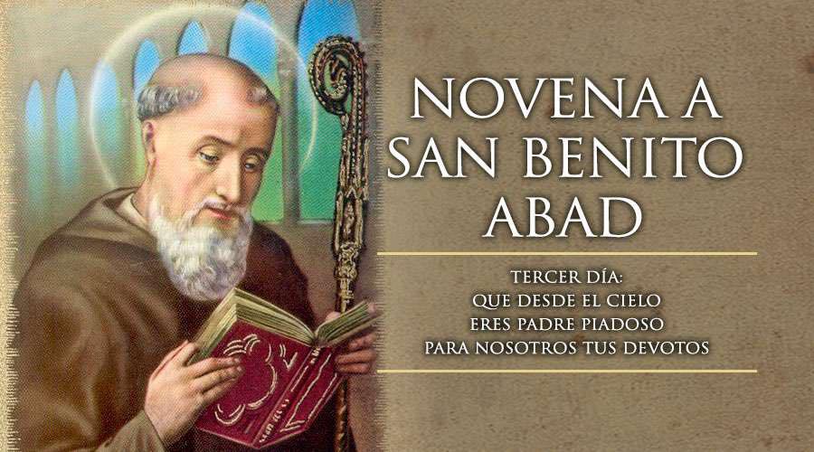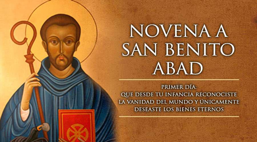 ¡Oh glorioso San Benito, que desde tu infancia reconociste la vanidad del mundo y únicamente deseaste los bienes eternos! Alcánzanos un vivo deseo del cielo y que recordemos frecuentemente a Dios, nuestro último fin, y hacia Él ordenemos toda nuestra vida para que en todo Él sea glorificado.