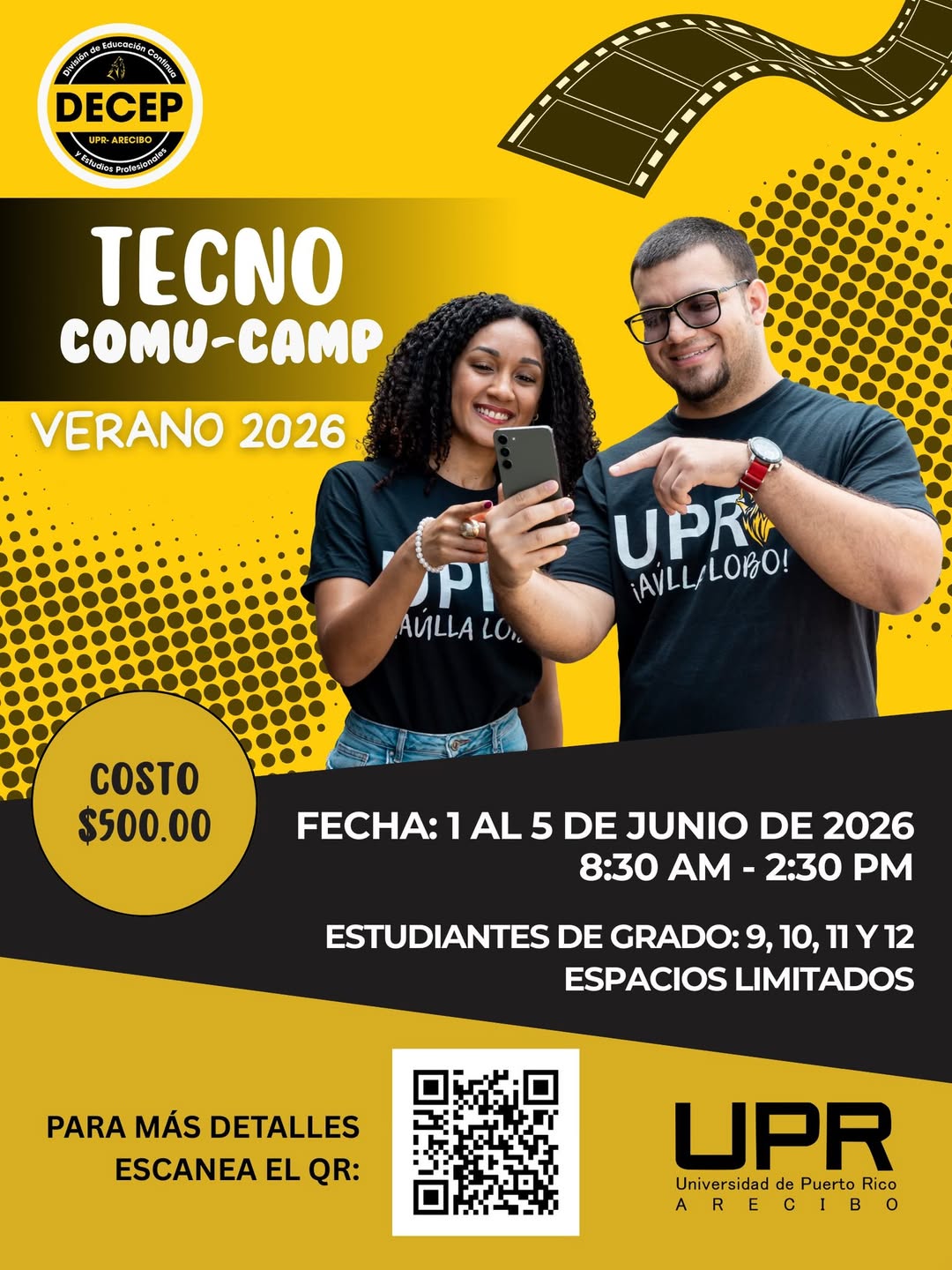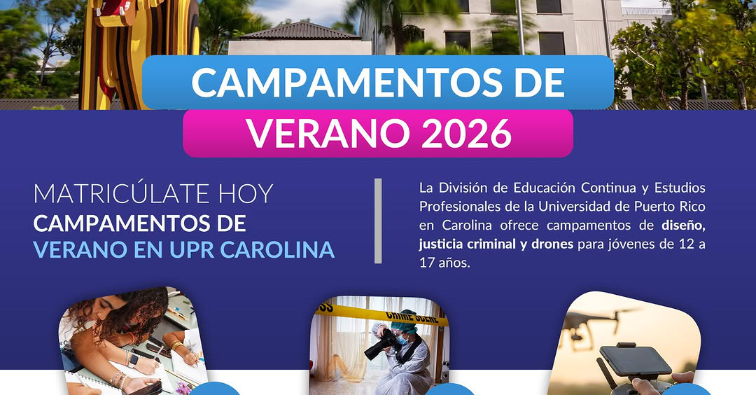 La Universidad de Puerto Rico en Arecibo – UPRA, a través de la División de Educación Continua y Estudios Profesionales (DECEP), invita a estudiantes a participar del Tecno COMU Camp – Verano 2026, una experiencia educativa dinámica donde los participantes podrán desarrollar destrezas en tecnología, comunicación y creatividad dentro de un ambiente universitario.