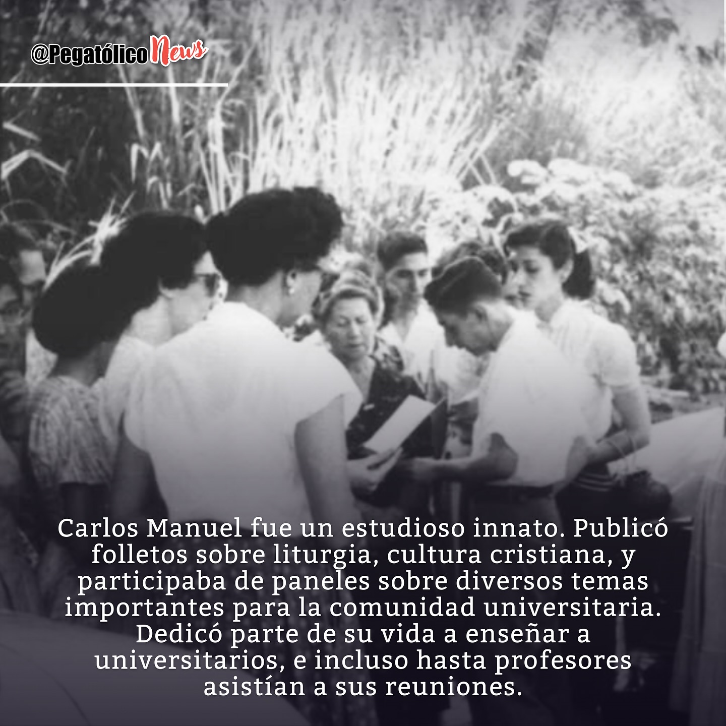 📖 Carlos Manuel fue un estudioso innato. Publicó folletos sobre liturgia, cultura cristiana, y participó de paneles sobre diversos temas importantes para la comunidad universitaria. Dedicó parte de su vida a enseñar a universitarios sobre fe y cultura, e incluso hasta profesores asistían a sus reuniones.